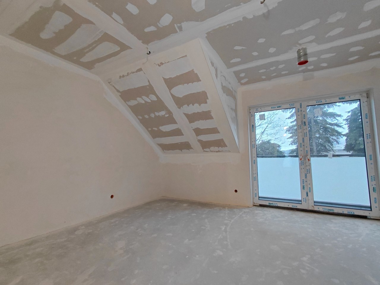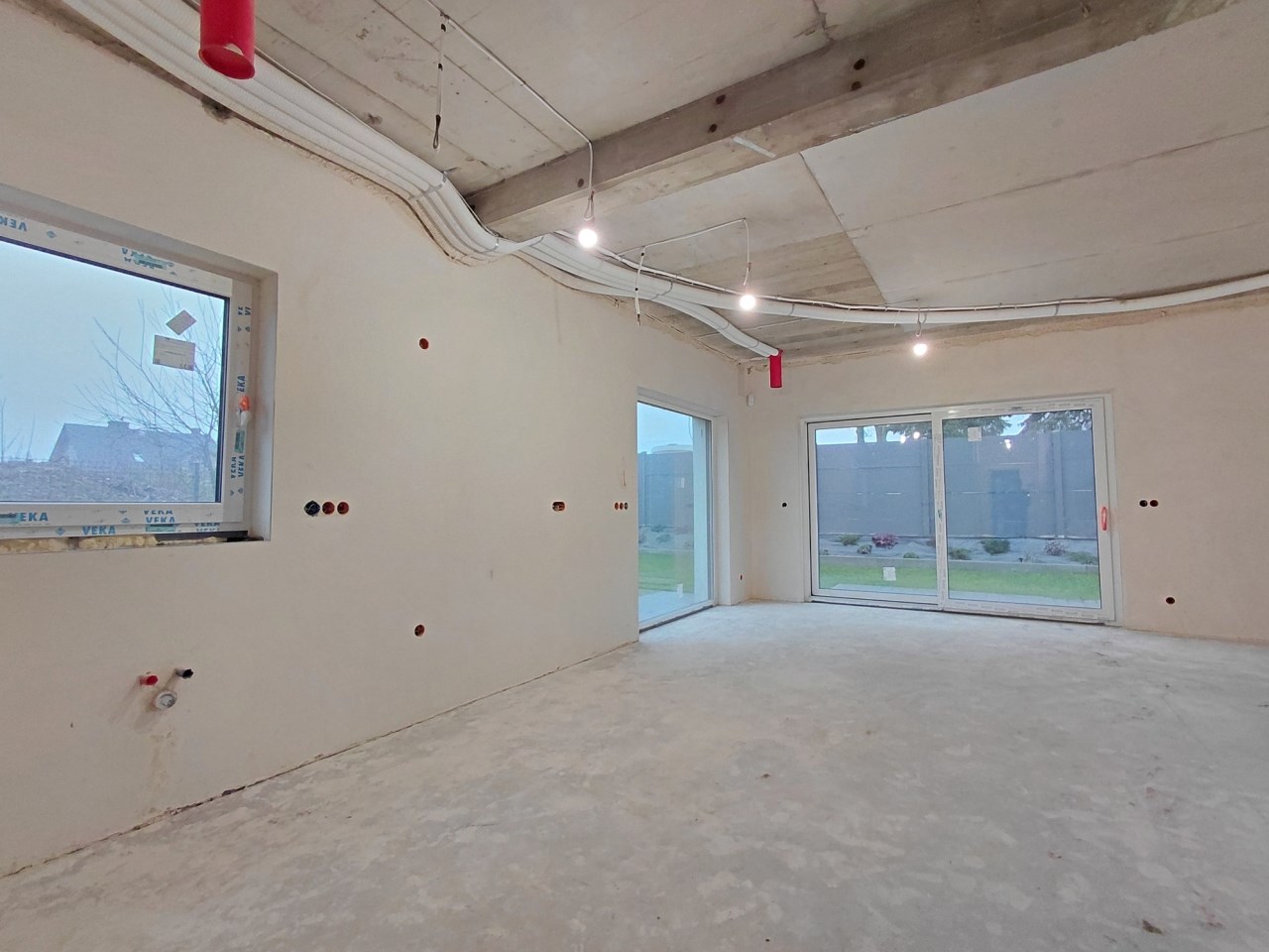Dom wyposażony jest w nowoczesne rozwiązania techniczne. Posiada trzyszybowe okna Veka w kolorze antracytowym, duże przesuwne przeszklenia w systemie HS, rolety zewnętrzne sterowane elektrycznie, ogrzewanie podłogowe na obu kondygnacjach oraz przygotowaną instalację pod pompę ciepła. W standardzie znajduje się także rekuperacja, klimatyzacja we wszystkich pokojach, system alarmowy, monitoring oraz szybki światłowód. Ogród został wykończony i ogrodzony, co pozwala od razu korzystać z przestrzeni zewnętrznej.