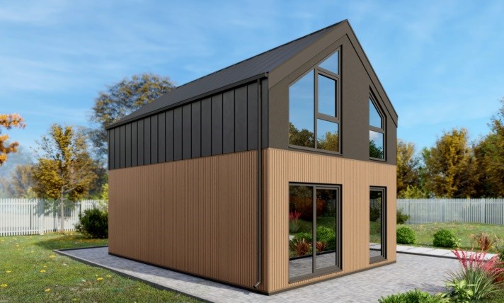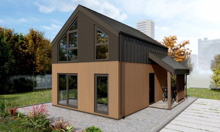 Technologia: Dom energooszczędny, modułowy, prefabrykowany w technologii drewnianej.