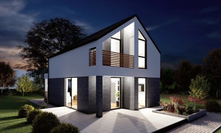 Ten dom zapewni idealne warunki do życia dla Ciebie i Twojej rodziny z niesymetrycznym układem okien, przestronnym garażem z elektryczną bramą, pięknie doświetlonymi przestrzeniami, trzema sypialniami i przestronnym salonem z aneksem kuchennym i wyjściem na taras oraz łazienką i toaletą. Stylowa stodoła z ładnym przeszkleniem i niecodziennym kształtem dodaje mu niepowtarzalnego charakteru. To niezwykłe miejsce, w którym można się zrelaksować i cieszyć życiem. Nowoczesny dom modułowy w technologii drewnianej wykończony do stanu deweloperskiego.