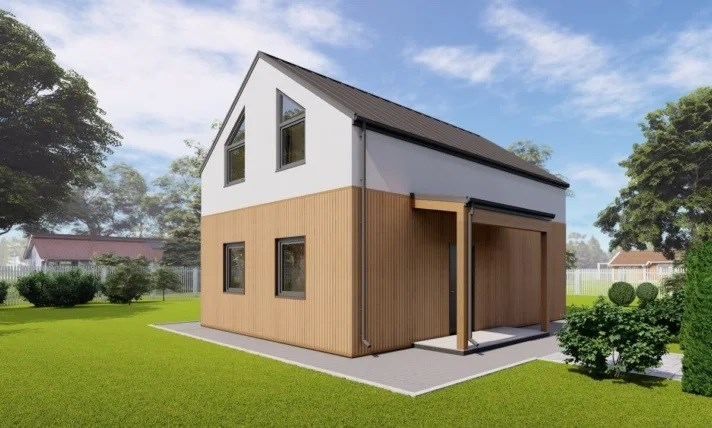 Technologia: Dom energooszczędny, modułowy, prefabrykowany w technologii drewnianej.