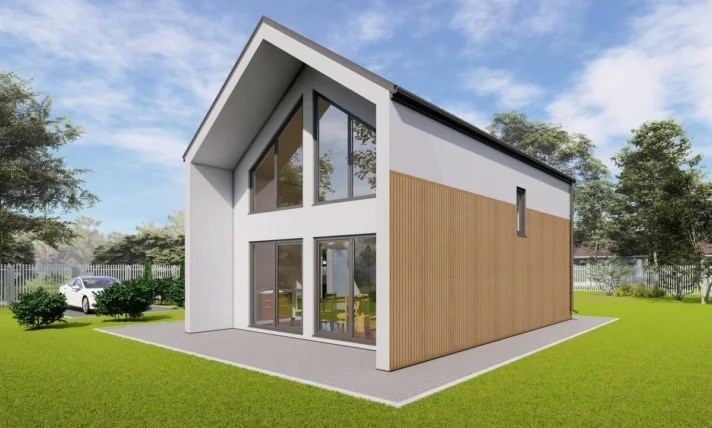 Cena obejmuje: Dom modułowy w stanie deweloperskim oraz działkę.