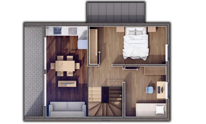 Powierzchnia domu: parter 54 m², antresola 25m².