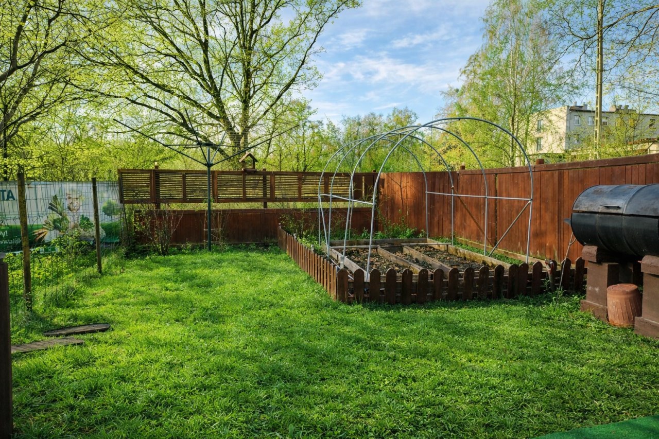Ogródek przy kamienicy, wliczony w cenę mieszkania – idealny na relaks, ogródek warzywny lub przestrzeń rekreacyjną.
