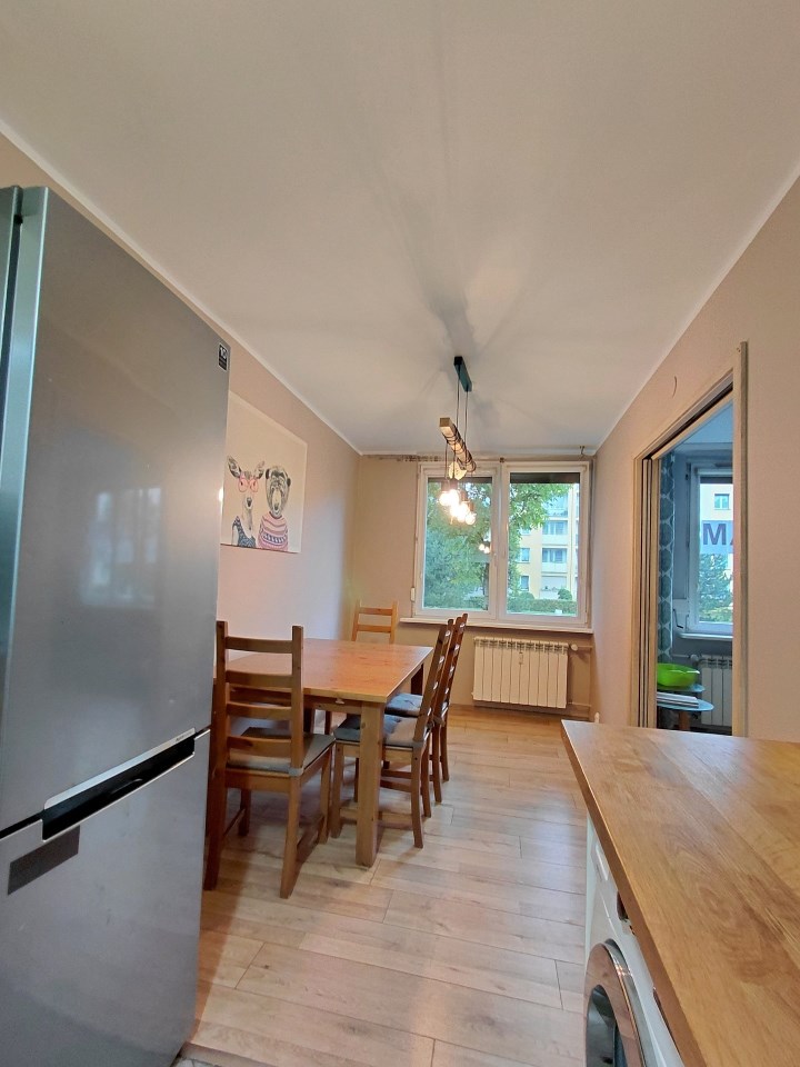 Mieszkanie o funkcjonalnym układzie, po generalnym remoncie w 2019 roku (wymienione wszystkie instalacje, poza wodną w łazience). W pokojach wykonano gładzie, a w kuchni i łazience położono kafelki. We wszystkich oknach zamontowano rolety zewnętrzne antywłamaniowe. Lokal jest bardzo słoneczny, ciepły i wymaga jedynie odświeżenia.