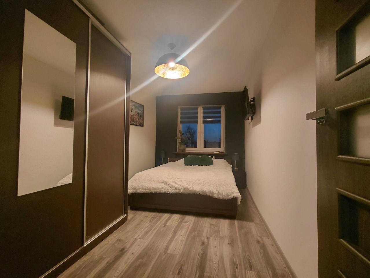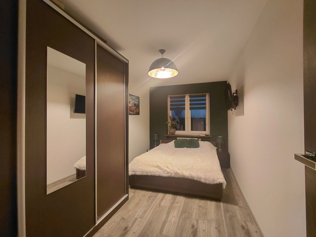 sypialnia z szafą w zabudowie,przedpokój z funkcjonalną szafą,
