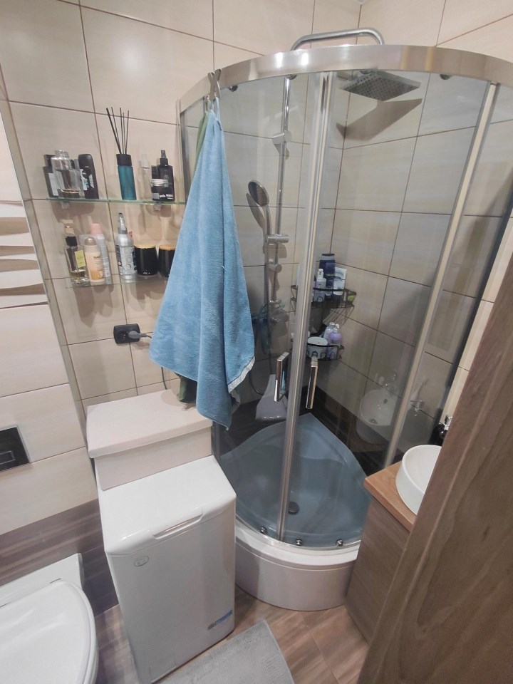 Ogrzewanie miejskie, ciepła woda z piecyka gazowego ukrytego w szafce kuchennej.