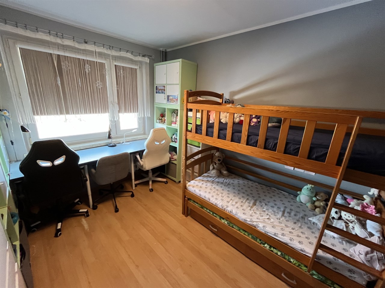 • dwie zabudowane szafy na wymiar (w przedpokoju i mniejszym pokoju)