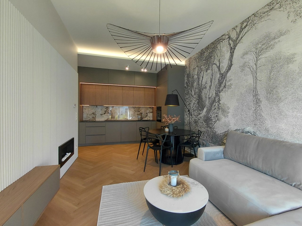 Mieszkanie zostało zaprojektowane przez architekta wnętrz i wykonane z wyjątkową dbałością o funkcjonalność oraz użycie materiałów najwyższej jakości. Lokal jest całkowicie nowy i gotowy do zamieszkania – w cenie pozostają wszystkie meble oraz nowe sprzęty AGD.